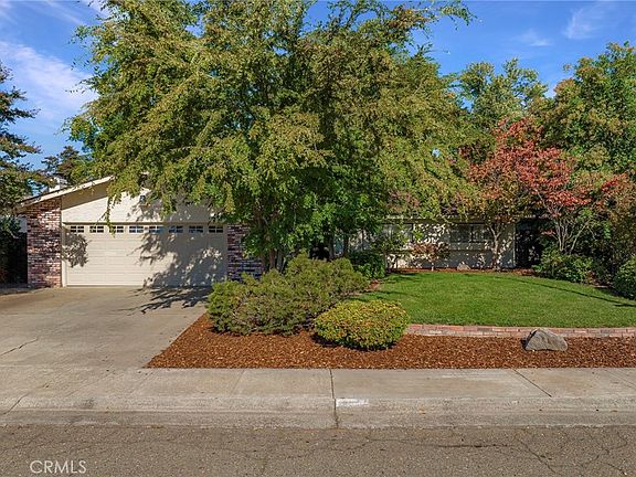 This is a perfect house in a perfect neighborhood in the perfect city of Chico. The front and back yards are beautifully manicured with a new sprinkler system and sod. There are many beautiful plants and trees to provides shade and privacy. This 3 bedroom/2 bath home is neat, tidy and well cared for. Most rooms have been newly painted. Plantation shutters on all the windows and a new, less than 2-year-old roof! The primary bath has been completely remodeled. This bath hosts a separate walk-in shower and a walk-in bath tub. One of the BEST features, is this house is walking distance to the GORGEOUS Bidwell Park!
