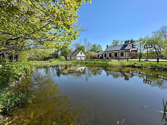 Surrounded by conserved land with sweeping views of the Connecticut River Valley and White Mountains, this beautifully converted Vermont Schoolhouse blends historic charm with thoughtful, modern updates. Lovingly maintained by a professional gardener and a cabinetmaker, the home and gardens reflect years of skilled care and attention to detail. Set on 1.6 acres, the L-shaped lot features flourishing perennial borders, fruit and nut trees, berry bushes, a kitchen garden, and a custom timber-frame garden shed. A scenic pond near the driveway invites wildlife and a nearby stone patio offers a peaceful place to relax in the sun or under autumn leaves. The traditional front porch welcomes you with vintage character, while the large back deck is ideal for entertaining, relaxing, or play. Inside, a vaulted-ceiling kitchen with walnut countertops opens to a cozy dining area and a sunlit living room warmed by a Jotul wood stove. Flexible rooms accommodate bedrooms, offices, or studios. The primary bedroom features a tiled ensuite bath and ample closet space. Above the garage, a beautifully finished, heated studio or office space offers a quiet, light-filled retreat, ideal for creative work, remote meetings, or simply enjoying the view. This one-of-a-kind home is ready to welcome its next chapter.