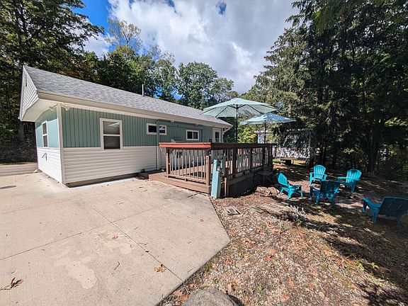 Welcome to your charming cottage, just ONE BLOCK from Higgins Lake, with a bunkhouse! Inside you'll find hickory kitchen cabinets, vinyl plank flooring, modern light fixtures, a tiled shower, and updates including a new well and tankless water heater. A 13x13 bunkhouse with vaulted ceilings is ideal for accommodating guests bringing the total square footage up to 650 sf. Take advantage of the public dock right around the corner for easy access to the water for swimming or fishing (no boat docking). Enjoy tranquil morning coffee on the deck or cozy evenings around the bonfire pit. This home has successful short term rental history and is being offered fully furnished- don't miss the opportunity to make this property your own!