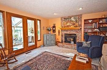 On golf course w/ view of 9th green! New ext paint, deck,tear-off roof & gutters, new furnace (2/10), refin oak floors, solarium w/tile floor off fam rm. MBR has sitting room (would have been 4th BR). Remod MBR ba w/ tiled floor, shower,& spa tub, skylight, W-I. Vault LR, coffered DR, oak ent w/bevelled leaded glass, A/C, elect filter, Island kit w/x-lg bayed nook.
