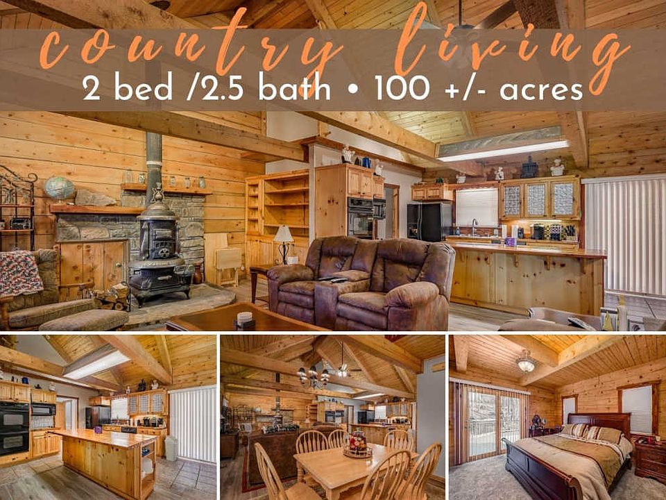 ONE OF A KIND PROPERTY! 100 private acres completely surrounded by THOUSANDS of National forest acres. It's a hunters paradise, miles and miles of trails connecting to national forest trails. Loaded with wildlife including Deer and turkey. Vista views without another home in sight. full log cabin with 2 bedrooms and 2.5 baths and bonus room. Large open living concept antique pot belly stove and loads of charm. You can't truly appreciate the beauty of this property with out seeing it yourself.