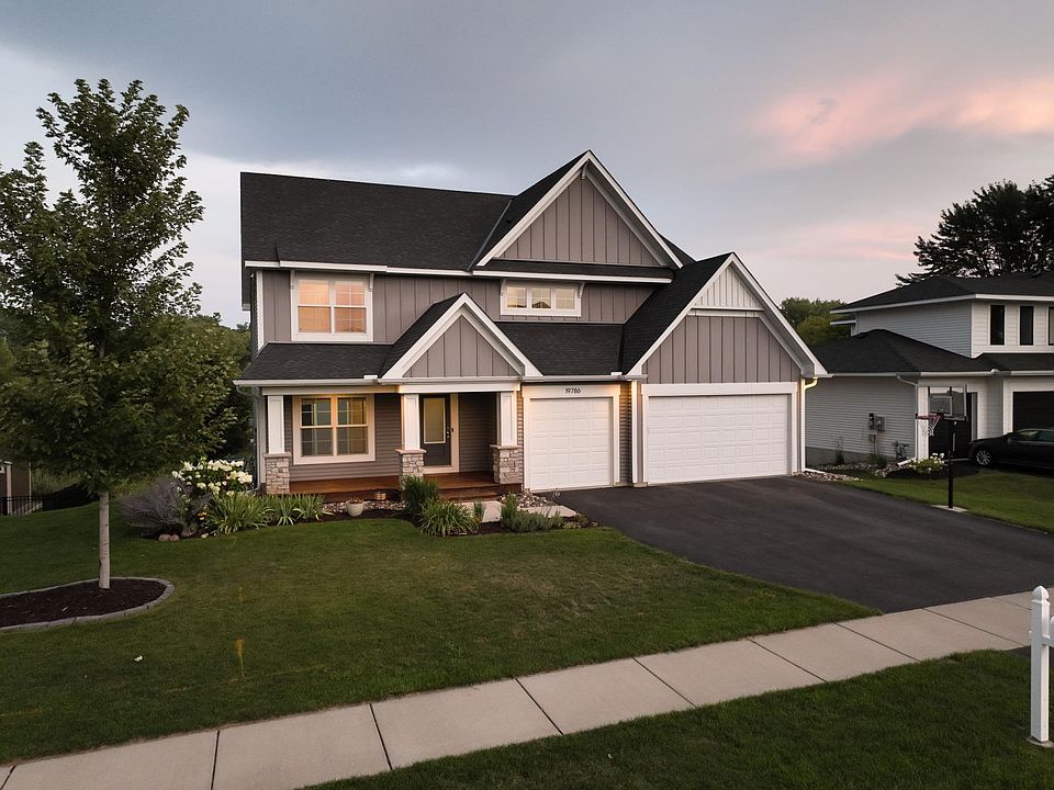 Gorgeous and rare find in Lakeville! This 6 Bed - 5 Bath Two-Story Home with oasis backyard is available for the 1st time. Enjoy the pond views, freshly stained deck and paver patio space in this private backyard! Ample room to entertain or enjoy an evening outdoors. The main floor offers solid surface flooring, living space connected to Gourmet kitchen via an open floor plan with plenty of light pouring in all day. Walk-in pantry, desk nook and mudroom connect kitchen with the 3-car garage. Bonus room can be used as guest bedroom, office or play room and features adjacent ¾ bath. Upper-level features 4 generously sized bedrooms, 3 full baths, laundry room and loft space – making this area of the home feel like a retreat. Lower-level entertainment area finished in the Spring of 2023! Includes an expansive living and game room space with custom built-in bar. New premium carpet and fresh paint on 3 levels give a new construction feel. ISD 194 schools and excellent Lakeville location!