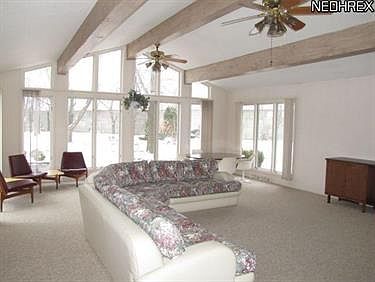 Contemporary 3 bedroom, 2 1/2 bath Brick Ranch sits on 0.6 acre cul de sac setting. Huge Great Room has soaring beamed ceiling, wall of windows and floor to ceiling fireplace that also opens to Living Room. Large eat-in Kitchen with center island opens to patio through glass sliding door. Master Bedroom has two double door closets and master bath. Two additional Bedrooms with Jack and Jill bath complete the bedroom wing. Updates include new roof 2012, furnace with electronic filter and central air conditioning 2009, 200 AMP service. Full, partially finished basement has room for storage and living space. Very private backyard with Gazebo, Picnic Table and Storage Shed. Close to Beachwood Mall, Legacy Village and walking distance to Brainard Park. Freeway access to Hillcrest Cleveland Clinic Facilities and Downtown Cleveland. Handicap accessible from garage.