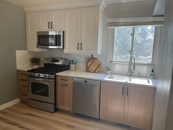 Nice 2-story home on corner lot backing to city greenbelt and the Power Trail. Kitchen features brand new cabinets with soft close doors and drawers and quartz counter tops. Appliances are SS including a new SS dishwasher. 3beds- all upstairs /3baths - half bath on main, full bath in hall upstairs, and a 3/4 master bath. The primary suite includes vanity, sink, toilet, shower, and large walk-in closet. Primary bedroom dimensions are 14x14 offering huge windows and great natural light. The two secondary bedrooms are 12x11 and 11x10. Washer and dryer included and located upstairs. New LVT floors throughout main level with gas fireplace in living/dining room. Cozy den tucked in back with large windows for views to back yard. Back yard features mature trees, large deck, flag stone patio area, fenced garden beds, and gate that opens to greenbelt for great privacy. Conveniently located in midtown Fort Collins close to amenities including grocery, gas, restaurants, and liquor. Absolutely NO smoking inside the property. Looking to get back on an August to August one year lease term. Dogs are allowed but no cats. Tenant is responsible for paying all utilities and for maintaining the front and back yard. For dogs, it's $35/month per dog on top of the $2,400/month rent.