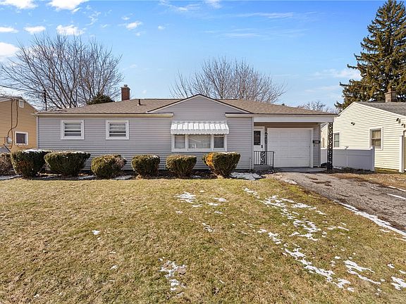 This adorable ranch style home is perfect to call home. Located in the Town of Irondequoit with East Irondequoit schools this home features 3 bedrooms. 1-car attached garage. Fully fenced rear yard with a patio. The interior of the home has been fully renovated. The home offers all new flooring throughout, paint and light fixture. Partially finished lower level for additional living space. This rec room has been all updated with new flooring and a built-in small kitchen area. Newer roof with a tear off (2017). Beautifully remodeled bathroom with tile surround. Brand new eat-in kitchen with all white cabinets and black accent hardware. Delayed negotiations until 3/17/2025 at 1pm. Open Houses 3/13/2025 from 4-5 & 3/16/2025 from 12-1:30.