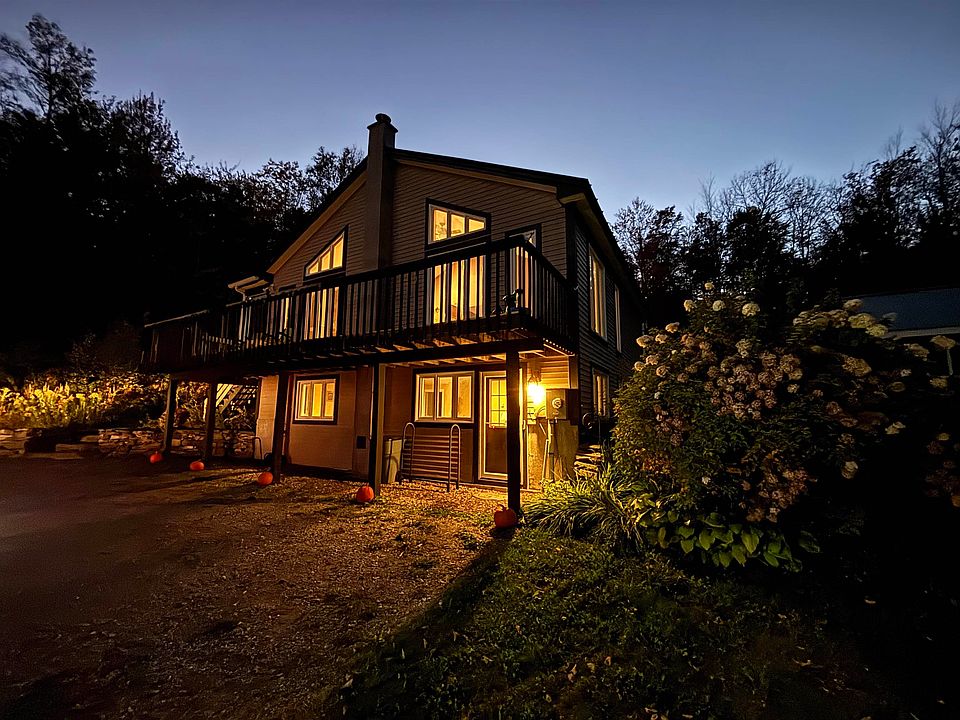 Welcome to this attractive Andover Contemporary home, perfectly suited for year-round living or as a Vermont vacation retreat. Built in 2005, this 3 bedroom, 2 bath residence offers modern comfort in a peaceful country setting on 2.1 acres while being just minutes from Okemo Mountain Resort and close to scenic snowmobile trails—ideal for outdoor enthusiasts in every season. The inviting open-concept main level features a spacious living area with vaulted ceiling and is filled with natural light, seamlessly blending kitchen with breakfast bar, dining, and living room. Two bedrooms and a full bath complete this level, offering convenience and functionality for family and guests. The finished, walkout lower level provides flexible living options with an additional room—perfect for a home office, study, or media space—alongside a cozy woodstove that adds charm while keeping heating costs low. The newly upgraded large, front deck is the perfect place to sip morning coffee and take in the view. Step outside to the beautifully landscaped yard with plenty of room for gardening, plus a firepit designed for gatherings. Two detached sheds offer storage and workshop potential for waxing your skis or wood/snowmobile/lawnmower storage. Whether you love skiing, hiking, or simply relaxing in Vermont’s natural beauty, this property delivers the perfect balance of comfort, location, and lifestyle.