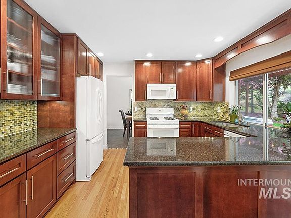 A fantastic opportunity in Boise’s premier foothills location, Somerset Ridge. Nestled in a quiet cul-de-sac, this fabulous residence was formerly featured in the Parade of Homes. Elegant & light-filled, the home is surrounded by a serene & striking landscape on nearly 1/3 of an acre. Peaked ceilings and wide windows accentuate the formal living and dining rooms. The renovated kitchen flows seamlessly into casual dining and cozy den. The backyard is a magical setting, peaceful & private, with a trickling water feature. Enjoy outdoor leisure & entertaining on the expansive paver stone patio with seating areas & hot tub, set below mature flowering trees & backing to open hillside. Fabulous community pool, pickleball courts, and neighborhood parks nearby. Convenient access to Hulls Gulch and Camel’s Back hiking & biking trails. Moments to popular North End attractions like Hyde Park dining and highly-ranked Longfellow Elementary. Close proximity to Saint Luke’s, downtown Boise, and desirable city amenities.