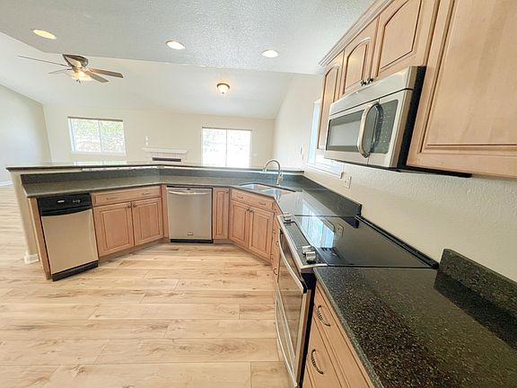 - Ceiling Fan(s), Double Vanity, Enclosed Toilet(s), Fiberglass Stall Shower, Granite Counters, Open Floorplan, Pantry, Primary Downstairs, Shower/Tub Combo, Solid Surface Counters, Stone Counters, Walk-In Closet(s)