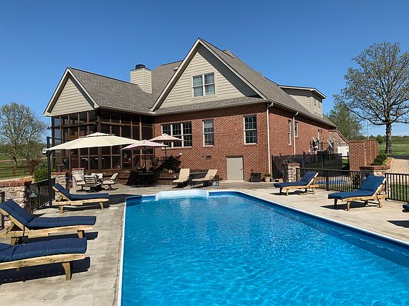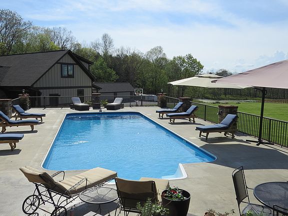 Full Brick-5 bedroom 4.5 bath on 5.85 acres. Full house Generac Generator-Large living room, Formal Dining room, 3 bedrooms on main level, 2 upstairs. Tons of walk-in attic storage. 16 x 40 in ground pool. Detached 4 car garage with 1496 sq. ft. living above. 16 x 56 Motor Home or Boat storage. Fenced, Pond and great location.