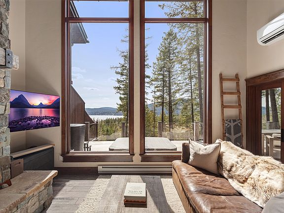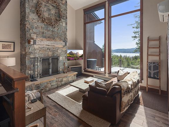 WHITEFISH LAKE VIEWS from this luxurious NIGHTLY RENTAL ZONED property. Located in the coveted Suncrest community, minutes from downtown Whitefish, between the lake and ski mountain. 2 bedrooms plus bonus room, 3 bathrooms, living room with vaulted ceiling, and huge floor to ceiling windows that bring sunlight and lake views to almost every room. PRIVATE COMMUNITY BEACH with swimming dock, boat storage and picnic areas. Miles of hiking and biking trails through the Iron Horse Golf community, down to the lake, and into downtown Whitefish are located just out the door. Other features include a steam shower, outdoor hot tub with a perfect view of Whitefish Lake sunsets, custom closets, a tankless gas water heater with instant hot water, power sun shades, Starlink Satellite, sprinkler system, and Tesla charging station. Property sold with elegant designer furnishings. This unit is one of two attached units, both for sale. Call Tanya Gersh 406-261-4830, or your Real Estate Professional.