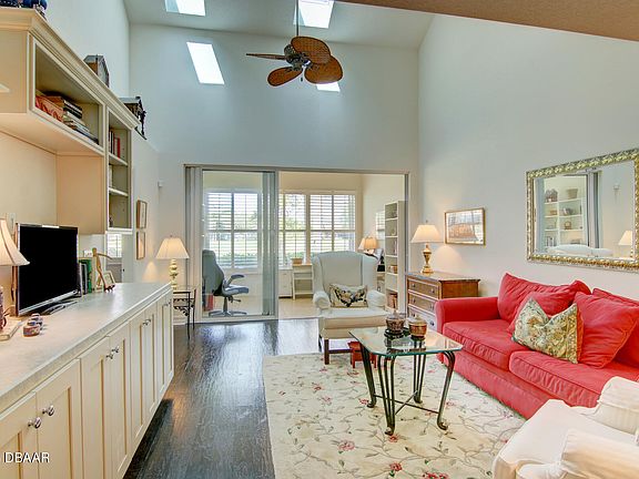 This villa-style condominium with a private entrance is a 2003-built Fairway Chase end-unit in guard-gated Spruce Creek Fly-In. The spacious Great Room features a volume ceiling, skylights and opens to the enclosed, climate-controlled Florida Room overlooking the golf course. A convenient pass-through counter connects the Great Room to the eat-in kitchen, which has abundant cabinets and counters and 2 pantries. Offering a split bedroom arrangement, the primary suite has a golf course view and an ensuite bath with a walk-in closet, 2 sinks and a walk-in shower. The 2nd bath, located next to the 2nd bedroom, has a walk-in shower. The loft area upstairs is perfect for an office, den, exercise room or another sleeping area. There is an attached 2-car garage and the roof was replaced in 2022. The quality lifestyle found in this community is unmatched, providing a multitude of community activities. Residents enjoy private streets, parks including a playground and a community owed small dock on Spruce Creek waterway providing access for fishing or to launch your canoe or kayak, onsite management, 24-hour staffed security, an onsite public restaurant, hair salon and other business services. The optional membership country club offers various levels of memberships and is complete with golf, tennis, pickleball, fitness, pool and a private restaurant/bar. There is a private 4,000' paved runway with a GPS approach, paved taxiways and aviation services. Conveniently located you can easily explore local shopping, dining and entertainment options with quick access to area beaches and water sports. If you are seeking out all that Florida living has to offer this property is the one for you. The monthly condo fee includes building insurance, lawn care, maintenance of the roof, exterior repairs, exterior painting and a private pool for Fairway Chase residents and their guests. There is an annual master HOA fee of $1700 in addition to the condo fee. All measurements are approximate. This sale is subject to probate court approval.