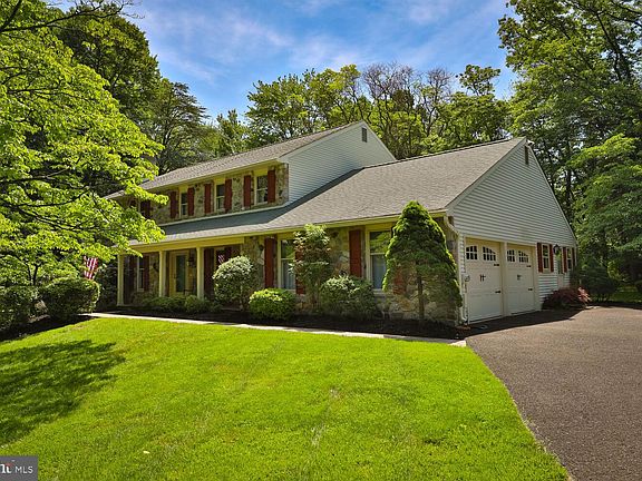 Huntingdon Valley – SET BACK off Terwood Road and situated on a cozy, PRIVATE lot of 1.52 acres, this 4 bedroom, 2 ½ bath, 2-story custom-built colonial (3,506 sq. ft.) is just waiting for the right buyer who will appreciate this beautiful home and surrounding wooded grounds. You enter the property down a long driveway which offers plenty of parking. A welcoming front porch leads to the center hall with ceramic tile flooring. The spacious living room features a wood-burning fireplace and 2 front windows. A formal dining room with 2 windows is perfect for large gatherings of family and friends. The kitchen offers granite countertops, a double sink, disposal, new dishwasher, new electric range, microwave, refrigerator and 2 pantries. The kitchen is open to a sizeable breakfast room with bay window. Off the breakfast room is a wonderful family room with wood beams, a stone fireplace (propane) flanked by built-ins and has a bay window that overlooks the back yard. Two coat closets, a powder room, a laundry room and bonus room/playroom/home office with doors leading to the driveway and to the backyard- complete the first floor. There is also inside access to the attached 2-car garage with electric openers. The second floor features the primary bedroom with ceiling fan, large walk-in closet and 3 windows. The primary bath has a large stall shower, vanity and linen closet. There is a second bedroom with 2 windows, a walk-in closet plus an additional double closet. The 3rd bedroom has 2 windows and a walk-in closet that has stairs leading to a floored attic with attic fan and heat pump/central air for 1 zone. The 4th bedroom has a double closet and 2 windows. The ceramic tile hall bath with tub/shower and linen closet complete the second floor floor. The unfinished basement with 8 ft. ceiling height could potentially be finished into more living space. A water softener, well tank, electric hot water heater and central air/ heat pump with electric backup (2nd zone) are located in the basement. This location provides the ideal combination of privacy with access to parks including the highly-rated Pennypack Ecological Restoration Trust and is minutes from shopping, restaurants, train stations, PA Turnpike, Abington-Jefferson Hospital, Holy Redeemer Hospital, Penn State – Abington Campus, the Willow Grove Y and Huntingdon Vallley Country Club. Schedule your appointment today!