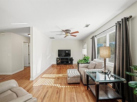 Charming, one-level home with open floor plan just minutes to the Battery and Smyrna Market Village! This home offers the perfect blend of comfort and modern living. Step inside and be greeted by the warmth of beautiful hardwood floors that flow seamlessly throughout. The kitchen features beautiful wood cabinetry and stainless steel appliances with a convenient walk-in pantry. Cooking and entertaining will be a delight as you engage with guests in the adjoining dining area and living rooms. One of the standout features of this home is the enormous, level and perfectly grassy back-yard. It's a dog's heaven and an entertainer's paradise. The possibilities are endless, whether you envision hosting BBQs, gardening, or simply relishing the beauty of nature in your private haven. You can also sit and watch the world go by from your rocking-chair front porch. This home also features an oversized primary suite with gorgeous tray ceilings and a walk-in closet that fulfills all your storage needs. Recently renovated and well maintained, this home is turn key. This property is perfectly situated in an ideal Smyrna location, offering convenience and easy access to Braves' games, shopping, dining, entertainment and everything you desire. Enjoy the best of both worlds, with serene neighborhood surroundings and proximity to essential amenities. Embrace the opportunity to create lasting memories in this exceptional property. Hurry, it won't last long!
