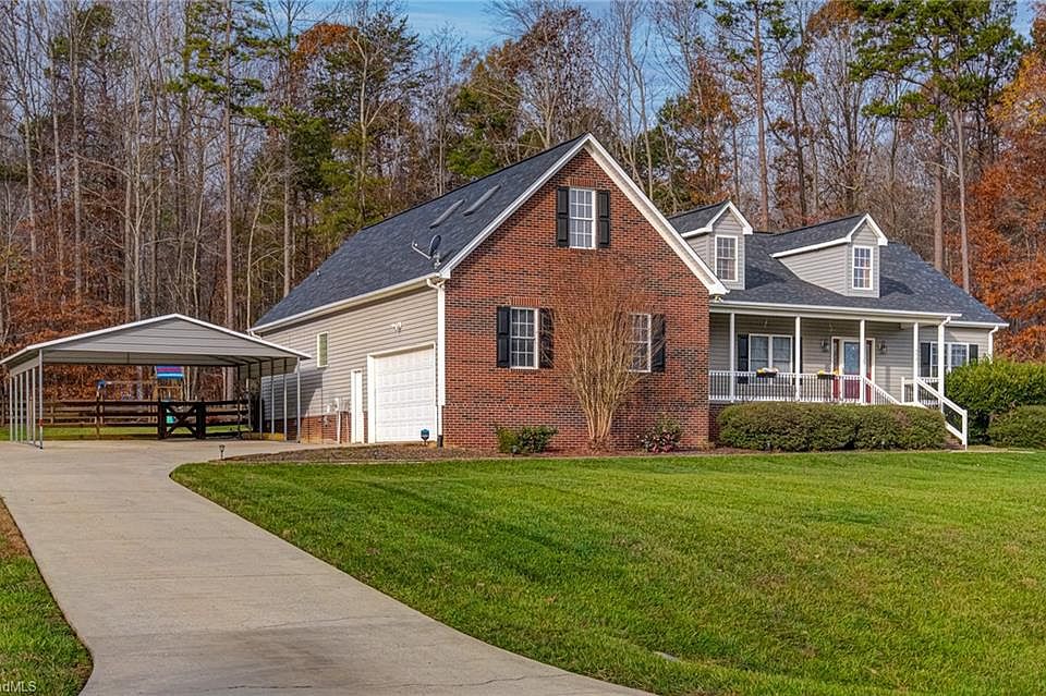 Step into this stunning Pleasant Garden home and be greeted by vaulted ceilings & abundant natural light that set the tone for a welcoming atmosphere. The open floor plan features a dedicated dining area and a spacious living room anchored by a charming stone gas fireplace. The kitchen boasts bar seating, a cozy breakfast nook, a pantry, and is perfect for hosting and everyday living! Retreat to the expansive primary suite, which offers a tray ceiling, private deck access, and a generously sized closet. This split floor plan adds privacy. A convenient half-bath off the kitchen serves your guests, while the upstairs bonus room provides versatile space for entertainment, relaxation, or a home office. Sitting on a picturesque close to an acre lot, this property features a large back deck and play area/set. The two-car garage comes with extra storage and a carport. Beautiful landscaping & a well-maintained driveway enhance the curb appeal of this cul-de-sac gem.