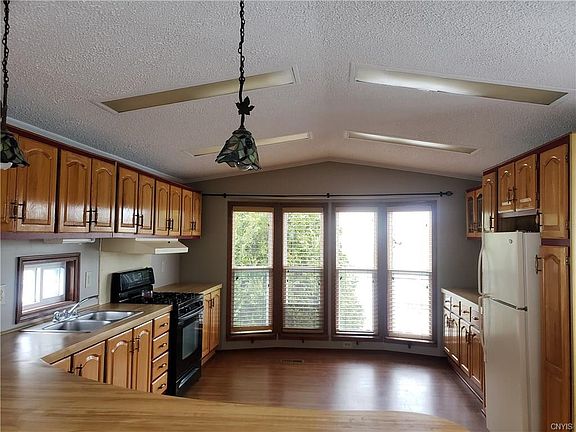 Check out this pristine, move in ready home! As soon as you walk in the front door you are greeted by a bright, spacious living room kitchen area. With loads of natural light and vaulted ceiling its really a wonderful comfy area. Down the hall are the 2 bedrooms and bath laundry combo. Outside you have a lovely, private back yard with a wooded back drop. A wood fired pizza oven and fire pit will make entertaining especially enjoyable. The shed and garden shed are a great size and offer tons of storage! Located only minutes to Watertown, Fort Drum or Carthage the location couldn't be more convenient. The lot next door is also available if more land is needed.