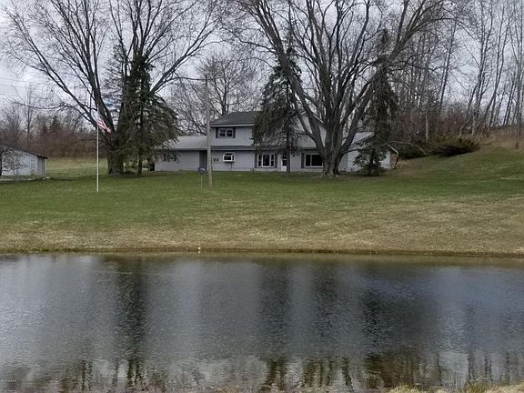 Great family home with 5 bedrooms and 2 full baths, open floor plan, appliances included, 2 stall attached garage and pole building--all on 5 acres with pond. Come see this gracious home.