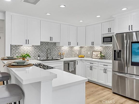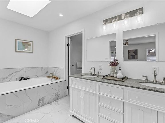 Tranquil living in Huntington Beach. This fully remodeled 5-bedroom, 2-bathroom home offers a spacious and modern living experience. The front entry with a gated courtyard provides privacy and a comfortable place to relax. The open concept design of this home creates a seamless flow throughout the house, making it perfect for entertaining guests. The large primary suite has a walk-in closet and an en-suite bathroom that boasts a luxurious soaking tub and dual sinks, while the large walk-in shower provides a refreshing and indulgent spa experience. The kitchen is equipped with sleek white shaker cabinets, elegant backsplash, quartz countertops and stainless steel appliances, combining functionality with a stylish aesthetic. Step outside to your oasis with a Gazebo that features recessed lighting, ceiling fan, and gas access, ideal for outdoor gatherings, and a BBQ for cooking up delicious meals. Additionally, a spa is available for ultimate relaxation and unwinding after a long day. Other features to note are wood look vinyl flooring, new Pex plumbing, crown molding, a/c, ceiling fans, security system, Ring doorbell, dual pane windows and slider, custom shutters, epoxy flooring in the garage and much more. This home offers a perfect blend of comfort, elegance, and outdoor entertainment possibilities. All of this plus what Huntington Beach has to offer such as world class beaches, award winning schools, walking, biking, shopping and dining. This beautiful home is ready for you!