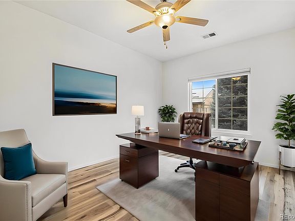 Welcome home! Sought after Ranch style home in the popular Sterling Hills Subdivision. Sitting proudly at the head of a cul-de-sac and loaded with amenities and updates. Brand new paint throughout the home plus all new upgraded flooring. Vaulted ceilings and a cozy gas fireplace in the living room. Glass French doors lead to the 3rd bedroom which also doubles as a great study or home office. The large kitchen has ample oak cabinets and plenty of room for dining. The yard is nicely landscaped and features a flagstone patio and beautiful gazebo plus two bonus storage sheds. Overhead storage racks, shelving and cabinets provide plenty of storage in the two-car garage. Free and clear solar system comes with the home so you can kick the high electric bills to the curb. Other amenities include: newer windows, security window film, attic fan, remote control sprinkler system and smart switches. This home is ready for you to simply move in and enjoy. Convenient E-470 access and close to area schools, shopping and dining.