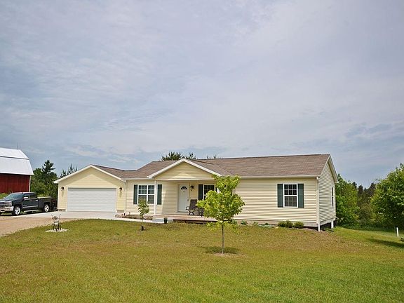 New Build! Finished in 2016, this 3 bedroom, 2 bath ranch is completely finished and everything is less than a year old. With a modern open floor plan, entertaining will be a breeze. The master suite has a private mater bath with a walk in large shower. The other 2 bedrooms are on the opposite side of the living area creating a nice private feeling. A substantial sized mud room/breeze way separates the main home from the attached 2 stall garage. This area is great for storage and provides a place to keep dirty cloths and foot ware out of your clean home. The latest construction materials results in a very energy efficient home to keep those energy costs low. New well, new septic, new roof, new furnace, new home! Outside is a covered front porch to sit relax. The extended approach in front of the garage also provides an area to keep your grill or even a dining area. The new gravel driveway provides mud free access to and from the home. With almost 2.5 acres of space, you have plenty of room for a garden, extensive deck, planting areas, and kid play areas. A nice buffer of trees is between the home and the paved road. Close to both elementary and high schools. Easy access to US131.