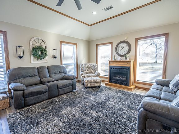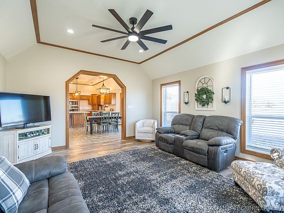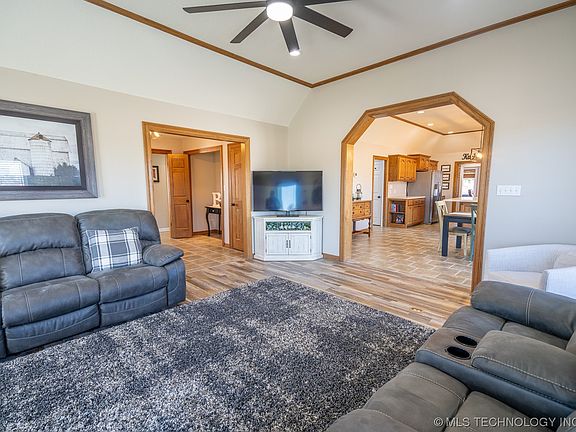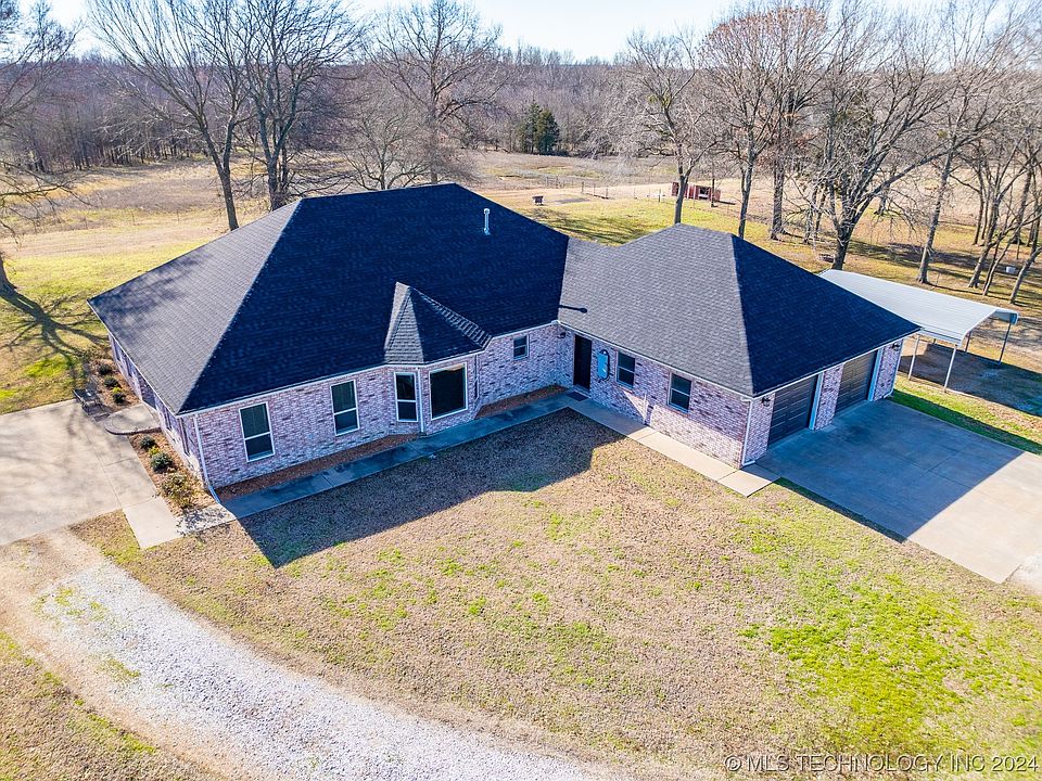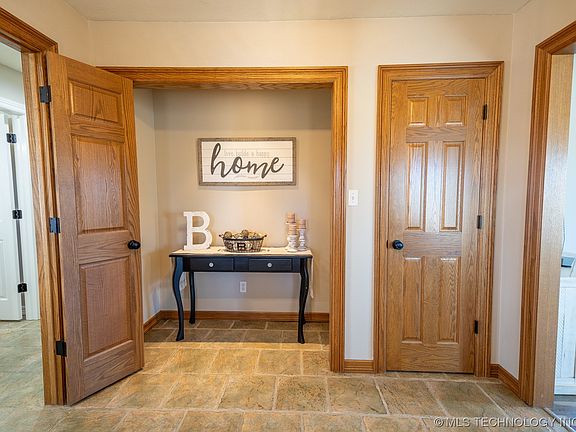 Welcome to your dream home, a custom-built home nestled on 5 acres, offering both tranquility and convenience. Located with easy access to I-40, this property ensures you're seamlessly connected to the Muskogee Turnpike with Tulsa or Fort Smith only 50 minutes away. This home provides ample space for comfort and privacy. The sunroom and office/flex space enhances the living experience. A large insulated 2-car garage with utility sink and additional washer and dryer connections. A carport offers plenty of storage for vehicles or outside toys. For those with a green thumb or a love of animals, 3 acres of the property fenced for livestock, and there's plenty of room for gardening, allowing you to embrace a sustainable and self-sufficient lifestyle. Inside the home, you'll find an energy-efficient geothermal HVAC system, a safe room doubling as a pantry, gas log fireplace. Outside the home includes a new roof in 2022 as well as a whole home generator. A modern sanctuary meets the charm of rural living.