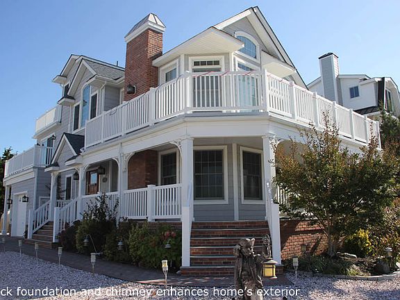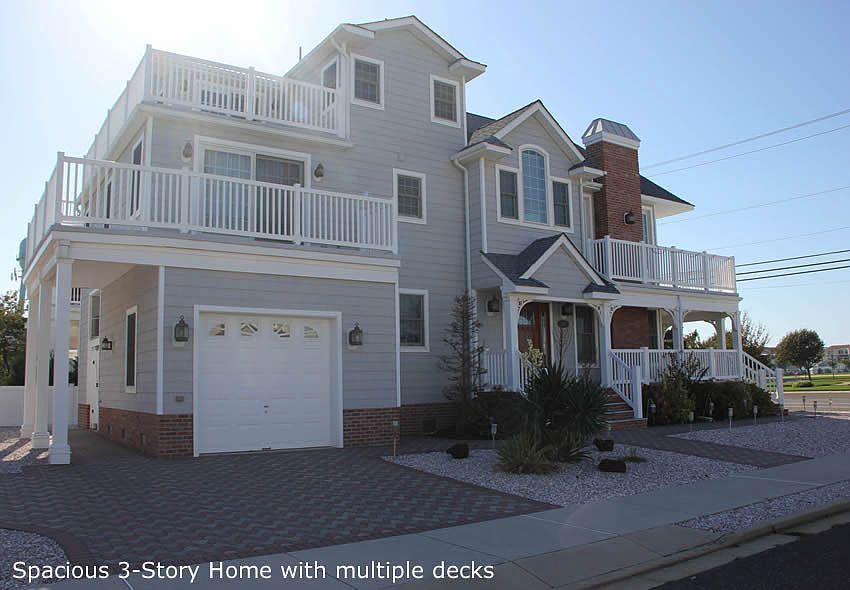 Ideally located in a quiet residential neighborhood on a 60x110 corner lot, this three-story, 5 bedroom 5 bath home (3 ensuite) is the answer to your family’s summer vacation needs. Summer fun begins enjoying the sights and sounds of the shore from any one of your multiple decks. The recreation fields across the street provide an open feeling without homes in your line of sight. Summer sunsets and rolling inlet waves are appreciated from the second and third level decks while the corner location allows the bay and ocean breezes to fill the home. After a day of summer fun at the beach located just a few blocks away, the whole family will enjoy a game of basketball, lacrosse, softball, soccer, tennis, or just plain fun on the playground across the street on the 12th Street recreation fields directly across the street. Inside the home offers a comfortable well thought- out floor plan with an ensuite bedroom on each living level, family room with wet bar and beverage fridge off front porch on the first floor for the kids and a voluminous second floor great room opening to a spacious wrap around deck. A gas fireplace warms this room on a cool fall/winter evening PLUS there is an easy option of adding a fireplace to the first floor family room. Bamboo flooring runs throughout the great room complimenting the wood cabinetry in the kitchen accented by granite counters. All the baths offer owner selected custom tile. The third floor master suite has its own private bath and deck along with the convenience of a second set of washer/dryer. There is well thought out storage throughout the home with lighted closets, pantry, oversized laundry room and attached garage. Your exterior is almost completely maintenance free with CertainTeed cedar impression siding, composite decking and railing system highlighted with brick face chimney and foundation. The home was built with a rat slab and additional smart vents to keep the home dry and tight. IF a pool is on your wish list, plan away. There is plenty of room in the back yard to add one. Agents see associated docs for additional property information