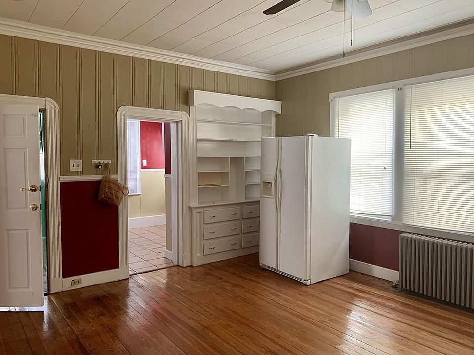 Looking for a sunny and pristine apartment ? Wait to you see this beautifully remodeled apartment! This spacious 2 bedroom, first floor apartment has handsome hardwood floors, built-in china cabinet, central heating, new bathroom with shower unit,. The updated white kitchen/ dining area has lots of cabinets plus an attractive built-in china /storage unit with stainless stove, dishwasher and white refrigerator. Two good sized bedrooms with closets. There is also a common outside porch and backyard. The 6 family unit is a very well maintained with updated vinyl siding, windows and roof .It is conveniently located in the heart of the North End shopping district and close to major roads, highways and public transportation. No PETS, SMOKING/VAPING is allowed! ALL applicants are subject to a credit check prior to final approval. Income must be three times the rental rate and min credit score of 620