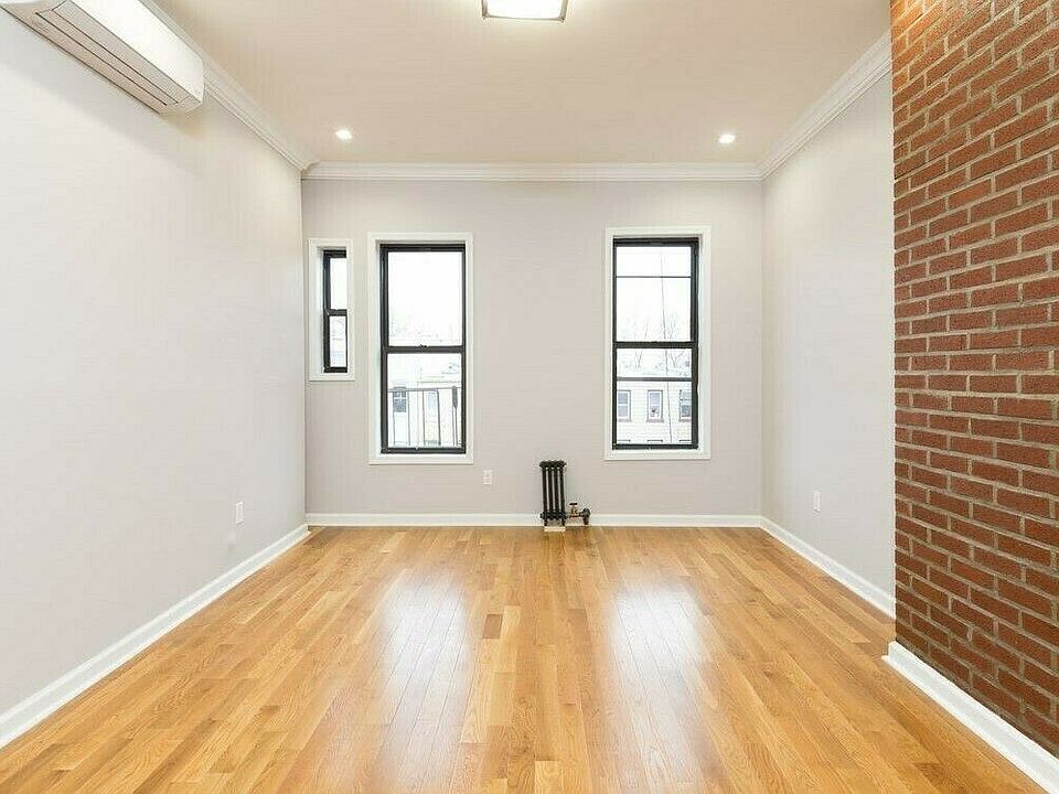 This is an amazing apartment can be used as 2 bedroom or a 1 bedroom living room layout. The apartment is floor through with 2 separate entryways and very high ceilings. The space has recently been renovated. Features A/C units in each room, hardwood floors, exposed brick, a fully equipped kitchen with stainless steel appliances, and lots of natural light. Available for an Immediate move in , Top floor only 2 flights up. No Broker Fee. Video Walk-through available upon request. Arrange your showing today