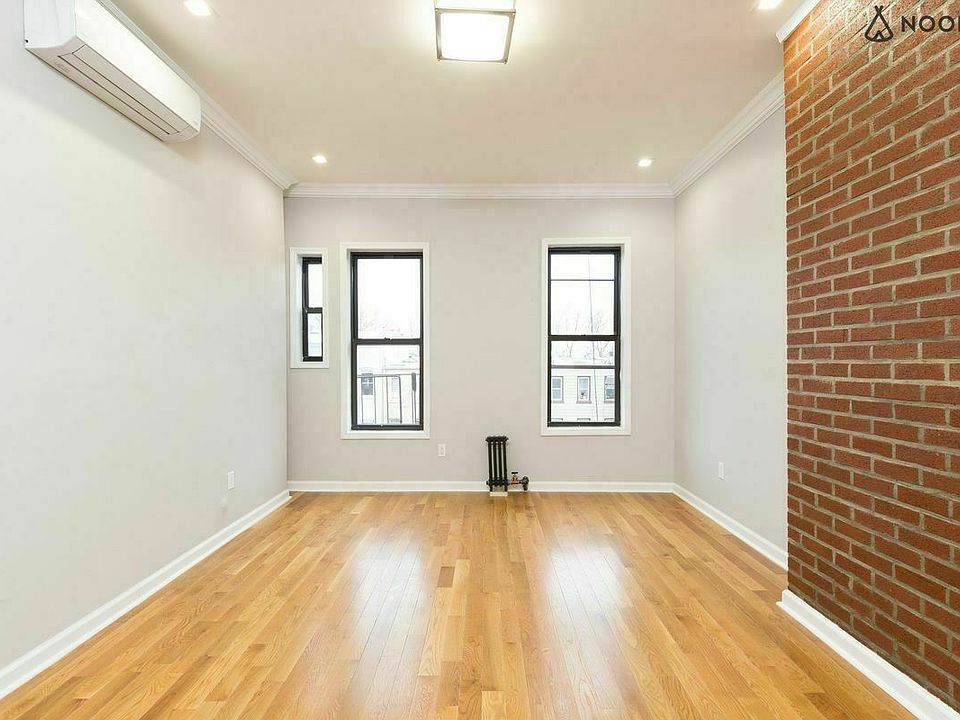This is an amazing apartment can be used as 2 bedroom or a 1 bedroom living room layout. The apartment is floor through with 2 separate entryways and very high ceilings. The space has recently been renovated. Features A/C units in each room, hardwood floors, exposed brick, a fully equipped kitchen with stainless steel appliances, and lots of natural light. Available for an Immediate move in , Top floor only 2 flights up. No Broker Fee. Video Walk-through available upon request. Arrange your showing today