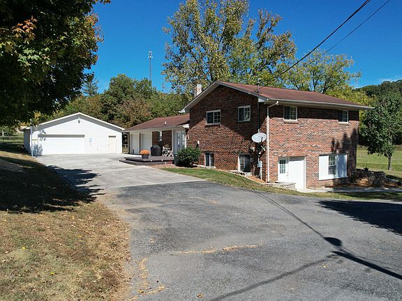 This home is full of possibilities! Brick home on 3/4 acre is peaceful & private, surrounded by rolling hills. Drive over little bridge to your private piece of paradise! Home has recent updates including new kitchen flooring, countertops, garbage disposal, paint. New custom barn door in primary bedroom provides updated look. Walk-out lower level has extra family/rec. room, huge laundry room and 3rd bedroom. With attached two car garage AND detached oversized workshop/garage, the possibilities are endless! Enclose garage to add onto existing home, remodel workshop & have Additional Living Quarters! Workshop has its own electric panel, plus water, new window air/unit, plus small separate workroom inside. Ton of storage! Fenced Yard and plenty of parking! This home includes all kitchen appliances, washer/dryer, TV in living room, and grill. Seller will provide home warranty with strong offer. Recent home inspection & copy of last survey in documents. Chimney can be removed. Come on out & see what this great home has to offer!