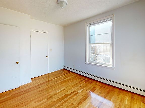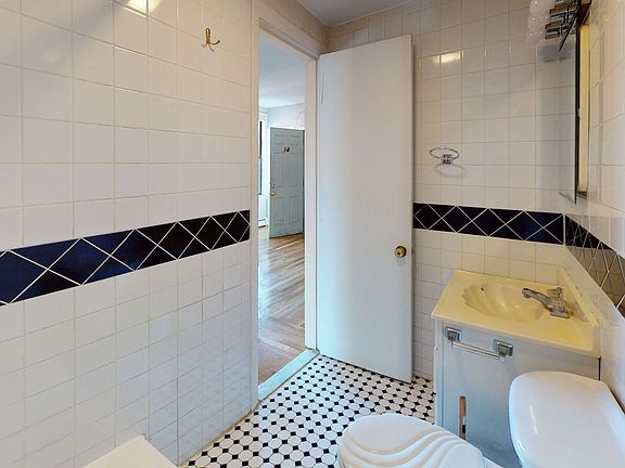 This one-bedroom apartment in Brighton offers a blend of modern functionality and classic charm. The kitchen, though compact, is well-equipped with white cabinetry, stainless steel appliances, and a sleek countertop. The space efficiently incorporates a full-size refrigerator and stove, maximizing utility in a limited area. Adjacent to the kitchen, hardwood floors extend throughout the living spaces, adding warmth and character to the apartment. The bathroom showcases a timeless design with white tiled walls, a decorative navy blue tile border, and a classic black and white checkered floor. A pedestal sink and essential fixtures complete the space. The main living area is bright and airy, featuring large windows that allow natural light to flood the room, enhancing the sense of space. The bedrooms, while modest in size, offer ample room for essential furnishings and storage. Throughout the apartment, neutral wall colors create a clean, fresh backdrop for personal decor. Heat and hot water included.