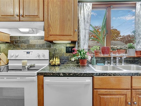 Set back from the road, this contemporary style cape cod is nestled among nature. Sip coffee on the deck in your fully fenced yard, and enjoy the beautiful flowering bushes and trees. The numerous large windows and skylights on the first floor bring in nature outdoors, and floods the house with natural light. Large living area with a wood stove is open to the dining room, and lends itself to entertaining. The entire first floor offers updated vinyl floor, and decorative tile in the entryway. The kitchen offers updated appliances, granite countertops, and first floor laundry. The full bath has been completely redone with decorative tile on the walls and floor, new vanity top, toilet, shower/tub with rain shower head and body spray jets. Plenty of storage in the partially finished attic, basement crawl space and 1 car attached garage. NEW hot water tank and tear off roof in 2023. Delayed Negotiations: Monday, 11/20/23 @ 9:30 AM.