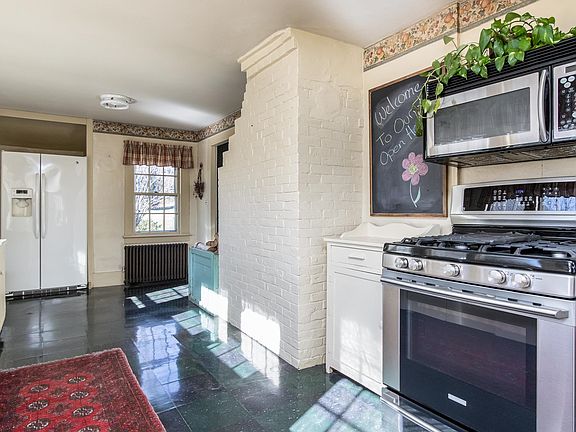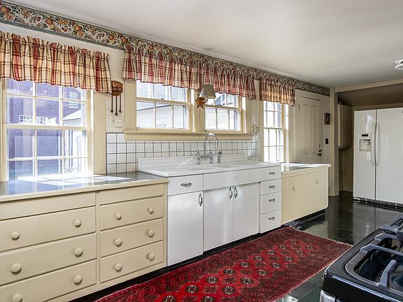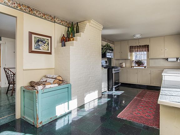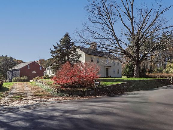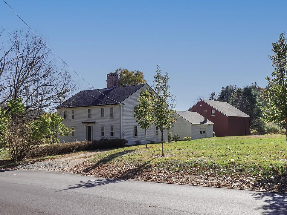 STEP BACK IN TIME with this circa 1760 New England Farmhouse - Post and beam construction and original plaster walls encompass stately rooms boasting hardwood and wide pumpkin pine floors, gunstock corners, built-ins and 6 fireplaces. Six over six wood windows with original wavy glass look out to private surroundings. The 1-car heated carriage house has two stories and enters into a mudroom that continues in to a charming country kitchen. Adjacent, the dining room is warmed by a Vermont Castings wood stove and a beautiful built-in spans the opposite wall, opening to the sitting room featuring a brick fireplace with gas log insert and a granite hearth. A wood fireplace brings ambiance to the front family room. Handcrafted paneling and doors surround the handsome office with a separate, private study. The formal front entrance opens to a spiral “bridal” staircase to the upper level. The primary bedroom has two large closets and an enclosed fireplace with wood stove thimble. The sweet bathroom has a cast iron claw foot tub with shower surround and a large linen closet. Three additional, generous sized bedrooms provide great closet space, refinished flooring and period lighting. Descend the back turned staircase where a side entry through a 3-season porch brings in the outdoors. The detached 40x50 antique post and beam barn is in excellent condition with multiple stalls, a huge workshop, 3 levels, electric and water. A Wedding Venue - Bed & Breakfast - Farm - Your Quiet Escape.
