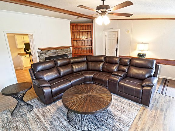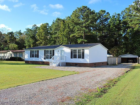 Looking for a furnished country getaway? This 3-bedroom, 2 bath home offers over a half-acre with no HOA dues required. Park your boat in the spacious driveway - and the NE Cape Fear River Access is just a few miles away. This well-kept home includes a newer metal roof, newer HVAC, newer appliances, and newer water softener. Seller is even leaving a new water heater that has been purchased but not installed. Solid surface floors run throughout. Notice the built-in shelving and beautiful wood burning fireplace in the great room. The washer and dryer have been relocated to the primary bathroom, which creates more space in the kitchen. And, the primary bathroom still is large enough to include a dual vanity. This desirable split bedroom floor plan includes generous closets in all the bedrooms. Take advantage of the outdoor life enjoying the breeze on the screen porch or entertaining at the grilling area and fire pit. Privacy is a nice touch with the woods behind the fenced backyard. Store all your tools and recreational toys in the wired shed or covered carport. Easy to view and any furniture can be removed if not desired by the buyer.