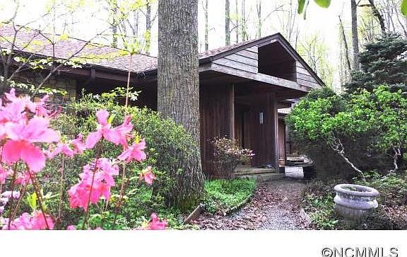 2014 Appraisal prices this home at $492,000. Spacious and sunny contemporary home with hardwood floors and 2 fireplaces. Large game room in the lower level with Cherry wainscoting. Expansive decking takes in the South East Mountain View & azalea gardens below. Property is 8.5 acres & includes a 1 bedroom guest house, pond and extensive conifer gardens. 20 min to Asheville