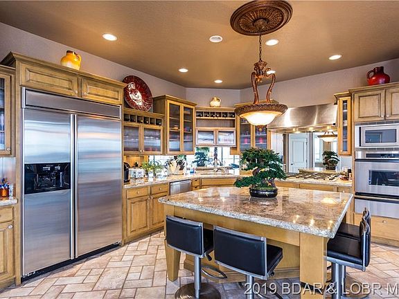 This amazing Cedar Crest home has a commanding presence in the Lake's most prestigious development situated on an oversize lot-and-a-half featuring all the creature comforts one could want. Exceptionally wide on the road and water, the privacy and view are unparalleled. Main level living with two master suites plus office/den, dramatic great room with see-thru fireplace into a hearth room- dining room combo, all wide open to the heart of the home's gourmet kitchen and wet bar. Upper level features a huge game/theatre room with full bath, plus another jr master and 2 more guest bedrooms with jack-n-jill bath. Huge concrete decks feature a beautiful firepit and outdoor kitchen, plus a recreation facility currently used as a six-car garage/storage building but converts to a guest house. But wait - there's more! A Safe room, shop, gorgeous finishes with granite and crown moldings, fully furnished and accessorized with boat slip in the community dock. Just steps to community pool.