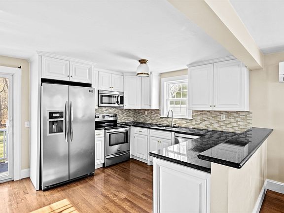 OPEN HOUSE CANCELLED-ACCEPTED OFFER.Bright and sunny Cape just steps from the Hingham Rec Center and Downtown Hingham! This home boasts curb appeal and a thoughtfully designed interior with an open-concept kitchen featuring granite countertops, an eat-in dining area, and a cozy living room with a wood-burning fireplace. The first floor includes a versatile den/office, a bedroom, and a full bath, ideal for flexible living. Upstairs, find two spacious bedrooms with ample closets and an additional full bath. Situated on a stunning lot, enjoy a spacious Trex deck overlooking a private backyard. Features include AC, gleaming hardwood floors, and a 4-bedroom septic system. Conveniently located near Hingham Square, the commuter train, and Hingham Harbor. Don’t miss this chance to enjoy the best of downtown Hingham living!