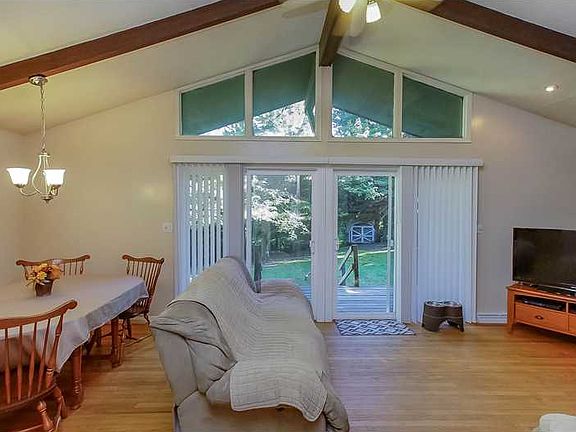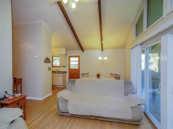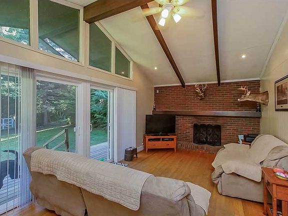 Yes, I'm cute, Yes, I'm cozy, Yes, I am probably the dollhouse for you! Vaulted beamed ceilings, transom windows and a brick fireplace accent the open design of this ranch set on over a 1/2 acre! Move right in to this 2 bedroom with covered parking close to all the mountain attractions you love!