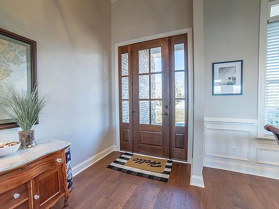 Welcome home to this immaculate house on a lake front lot with beautiful panoramic view of the lake! A custom built home that offers a lot of stunning features. A welcoming foyer and the interior boasts large windows and sliding glass doors to give you a lake view from almost every room in the house. Hardwood floors and crown molding throughout the common areas, and tons of natural light. The great room features a fireplace. The gorgeous kitchen offers an oversized island, lots of counters, white cabinets, butler's pantry, and office space. Have breakfast in the eat-in kitchen overlooking the lake from the large window. Host a formal dinner with your guests in the separate formal dining room that features a nice coffered ceiling. Retreat to a huge master suite that boasts a a master bath with glass shower, soaker tub, double vanities, and huge walk-in closet. Upstairs are the guest suites that also offer a nice view of the waters. Enjoy the outdoor views on the covered back patio.