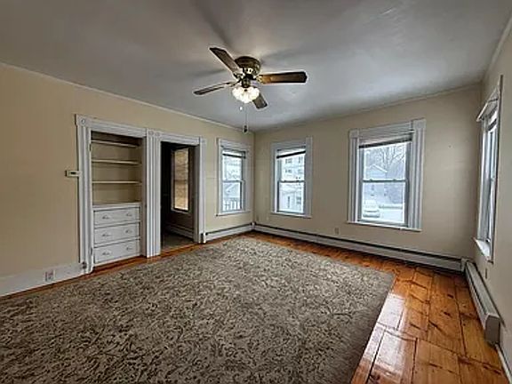 Welcome to this charming and well-maintained 3-bedroom, 1-bathroom unit on the second floor, perfect for comfortable and convenient living. The property features maintained landscaping, which is included in the rent. Inside, you'll find a clean and functional layout with wide-plank hardwood floors, built-in shelving, and a ceiling fan for added comfort. The kitchen comes equipped with a gas stove, and the bathroom offers a full bathtub. Tenants are responsible for gas, electric, and internet, and rental insurance is required. Please note that the unit is also smoke-free and pet-free. There is no broker fee, but first and security deposits are required prior to move-in. Don't miss this opportunity to make this inviting space your new home!
