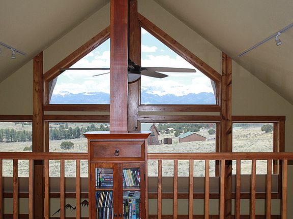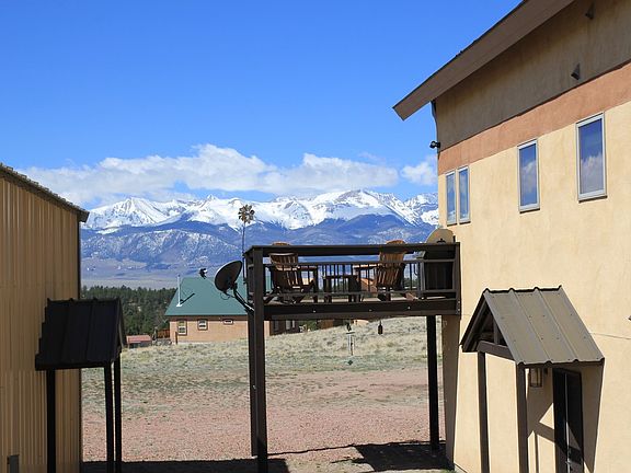 Stunning views of the Sangre de Cristo mountains are yours with this 2 Bedroom 2 1/2 Bath home. This home features a kitchen /Dining combo with a breakfast bar. Stainless steel appliances are featured in this kitchen and compliment the wood cabinets. In the Living Room this is where you find the floor to ceiling windows and the wood burning fireplace to keep those chilly nights at bay. The entire home including the 2 car attached garage is heated with radiant in floor heating.The Master Bathroom features walk in closets as does the upstairs bedroom. There is an 26 x 32 outbuilding that can be used as RV parking with RV Hook ups and Clean Out in the yard and in the work shop,Workshop that would be a place to store your mountain toys. Let this be your forever home or Vacation home either way this is a must see!