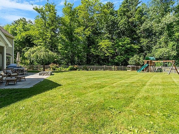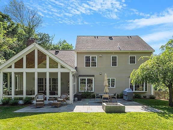 This lovely home, set upon over an acre of land, elicits classic New England elegance. Space galore in this 4 bedroom,2.5 bath colonial, with a 2 car garage. The custom white cabinet chef’s kitchen has double ovens, a hooded vent stove top and pristine countertops. The kitchen and dinette area is open to the cathedral family room. The family room is enhanced with a floor to ceiling brick fireplace. Custom bookshelves, and recessed lighting complete the ambiance. Golden hardwood flooring enhances the elegance of the first floor. A beautiful recently built sunroom offers a perfect relaxing space to unwind. The dining room shows superb craftsmanship with wainscoting and crown molding. Large Main Bedroom Suite with private main bath and tub. The finished basement lends itself too many options. Finished walkup third level has space for a home office. Large level fenced in yard is a dream!