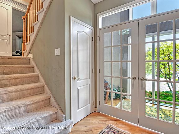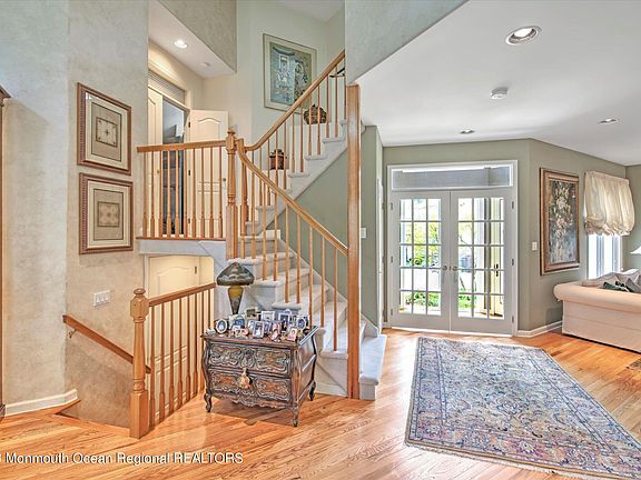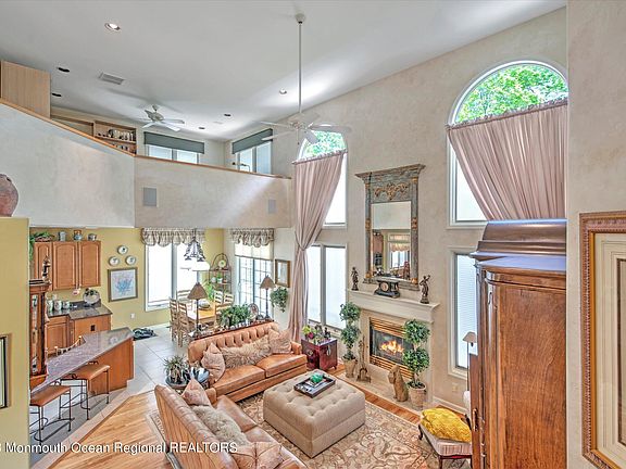 Stunning Carrara model in prestigious Beau Ridge community in Holmdel. Soaring, dramatic open floor plan. Impressive 2 story foyer & dramatic staircases highlight this 3 BR 3.5 BA home w/walk out lower level. Spacious LR & DR area w/HW flooring, recessed lighting & gas FP. Gourmet CI kitchen w/state of art appliances including sub zero refrigerator, 42''Kraftmaid Oak cabinetry w/granite counters, breakfast bar & dinette area. 2 Story GR w/gas FP & HW Floor open to kitchen ideal for entertaining. Private owners suite features sitting area & custom built in cabinetry. MBA w/whirlpool tub, twin vanities & stall shower w/body sprays & temp control. upper level offers 2 BRMS, BA & breathtaking open loft w/built ins to accommodate home office. Full finished lower level w/wet bar & full BA. Central Vac. Enjoy BBQ on spacious wrap around deck. Must see this home to appreciate. Carrera model is largest model that was offered by builder. Complex offers Club house, pool, gym, tennis courts & playground. Easy access to NYC & within minutes to trains, buses & ferry, great parks, shops & the celebrated Jersey shore!