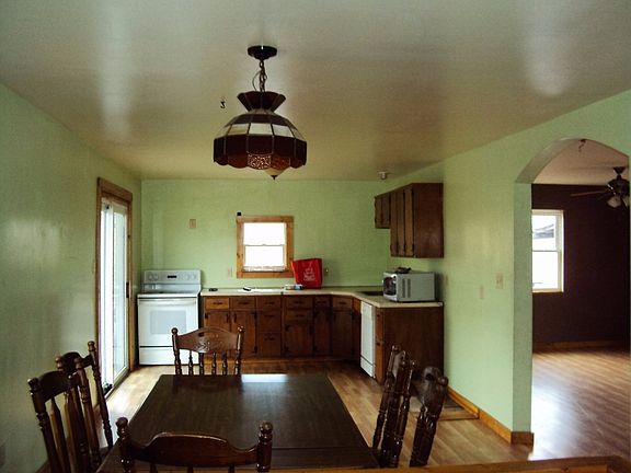 Open floor plan in kitchen and dining room. Home offers three bedrooms, one full bath, pergo flooring, a full basement with walkout. Home is ready for your family. Home has a storage building at the rear of the property. Needs some TLC. Property is being sold in as-is condition.