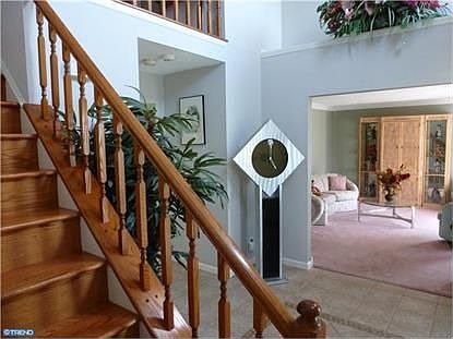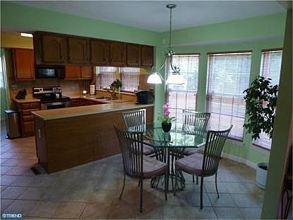 You Must See this Beautiful, well maintained home and property with fenced in premium lot that backs to woods with paved walkways. As you enter the home you are welcomed into an open foyer w/ceramic tile flooring that flows through the kitchen and breakfast area w/an open floor plan that includes the family room, fireplace and french doors leading to the deck and patio. The dining room has crown molding, chair rails and hardwood flooring. The upstairs features skylights and the master bedrm has hardwood flooring, his and her closets and a private bath with a jacuzzi tub. The finished basement is a GEM with built in storage compartments, office space, freezer and refrigerator and recessed lighting. Two car garage with plenty of off street parking in this extra wide driveway. Convenient location, close to shopping, minutes to Jersey Shore and Philadelphia!! A Home Warranty is also included.