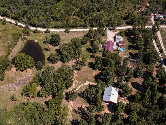 Are you looking for privacy and acreage, but still want to be close to town? This fantastic 52+/- acre homestead is perfect for YOU! Located just 10 minutes outside of Buffalo, this wonderfully maintained manufactured home is ready for its new owner. As you drive up you will notice the seclusion and gorgeous acreage with private spring fed, AND stocked, pond! A gravel driveway leads to the covered front porch with views of property. As you enter the super clean home you will notice the vaulted ceilings and wide open living and dining spaces. 3 large bedrooms with closets, and 2 bathrooms. Large open kitchen with island and seating, stainless steel appliances, and electric range. Gorgeous back doors to rear of property and swimming pool with new cover. Heading towards the back of the home you will notice another large living space with access to the HUGE covered back screened in deck, perfect for those rainy days as the home has a newer metal roof!! Large master suite with en suite bath and soaking tub. Outside you will notice the pipe/steel corrals and fencing for cattle, new septic system, he/she shed with insulation and cooling, large shop/garage with concrete floor, HUGE new hay barn, and additional storage buildings. The back acreage has been recently tilled for a fall deer hunt! Fruit trees on property including 2 apple, plum tree, peach tree, and grapes. Tons of areas for gardening and mushrooming! Absolutely gorgeous wet weather creek runs through the property as well!! Do not miss this opportunity for gorgeous Ozark land!!