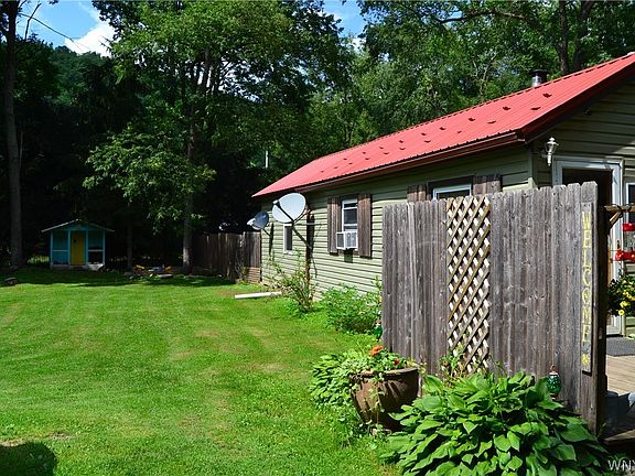 WHAT A DREAM LOCATION!! Tucked back in and far away yet 10 minutes to Bolivar or Wellsville-Less than 1/2 mile from Alma pond! Ask about lease land hunting opportunities. Trees adorn this "level land" private property with shade; hardwoods, pine, and fruit. Great views from every window! Cozy ranch with nice addition has new vinyl siding, metal roof, and new windows - ultimately maintenance free. Weekend getaway or year round residence, you will love it here. Completely fenced in back yard for your animals is a great feature. New small kitchen with white soft close cabinets, new counters, and flooring. Updated cute bath with stand-up shower. Centrally located living room with plenty of room for all has nice woodstove with nice decorative brick surround. Addition added is 2 nice size bedrooms with newer carpeting and large closets. Natural gas at this location, NO cell service. Internet and security system in place. All you really need is right here! Also see listing B1350959.