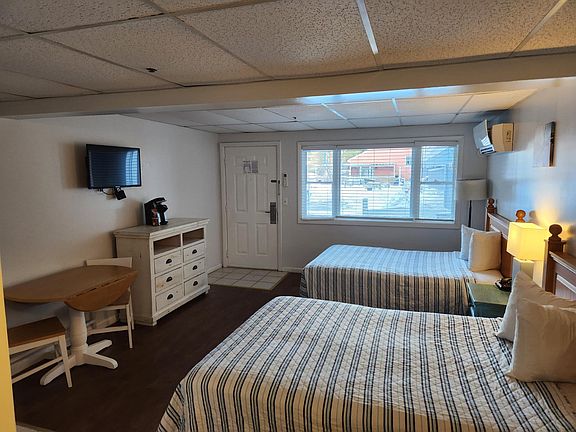 The Grand Beach Inn is now offering weekly rates starting now until May 31st 2026.We have the Standard kitchenettes Rooms available, includes two double beds, a small refrigerator, microwave and coffee maker. The rate is $260 a week + tax. This will also cover heat, hot water, electricity, WI-FI and snow removal. We do require a $500 security deposit and $250 pet deposit. (If applicable) No cats. The deposits are refundable at the end of your stay as long as no damages. There is a non refundable $25 application fee per applicant that is 18+