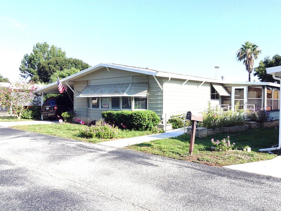 This is a very large 2 bedroom, 2 bath in gated Swiss Village. This home has an island kitchen which is very spacious as well as an extra large living room with bookshelves along one wall. This home has a master bedroom with an ensuite bathroom as well as a large walk in closet and double sink vanity. The guest bedroom shares a full bathroom which also has access from the hallway. The home is partially furnished and has a metal wheelchair ramp that goes up to the glass lanai on the side of the home.This is a must see home in beautiful Swiss Village.