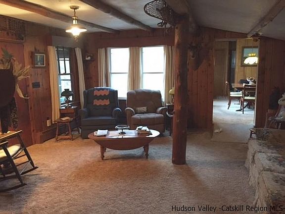 This sweet gem takes the high ground in the very heart of the Catskills. Spacious and comfortable cabin inspired living room includes stone fireplace, log beams, knotty pine, and a cozy sleeping nook. Recent new 30 year roof ('09), new dishwasher. Skiing, hiking, fishing, and hunting.. all right around the corner. Most furnishings available for sale or compromise. Original family sellers look forward to new owners who will enjoy this wonderful home-get-away as much as they have all these years.