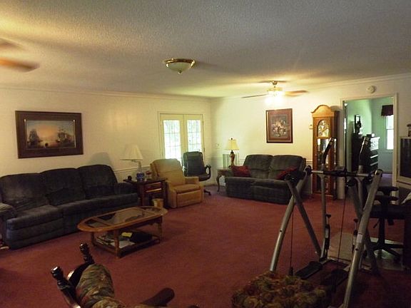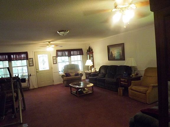 Well maintained 3BR/2BA ranch style home w/loft/bonus room. Very private setting on 3+ wooded acres. 24' x 24' metal bldg. w/power on concrete pas as well as metal double carport and metal boat shed. Very peaceful and serene setting with lots of privacy. Watch the wildlife from the swing on the full length front porch. Back yard fully fenced. Gas water heater and gas stove with convection